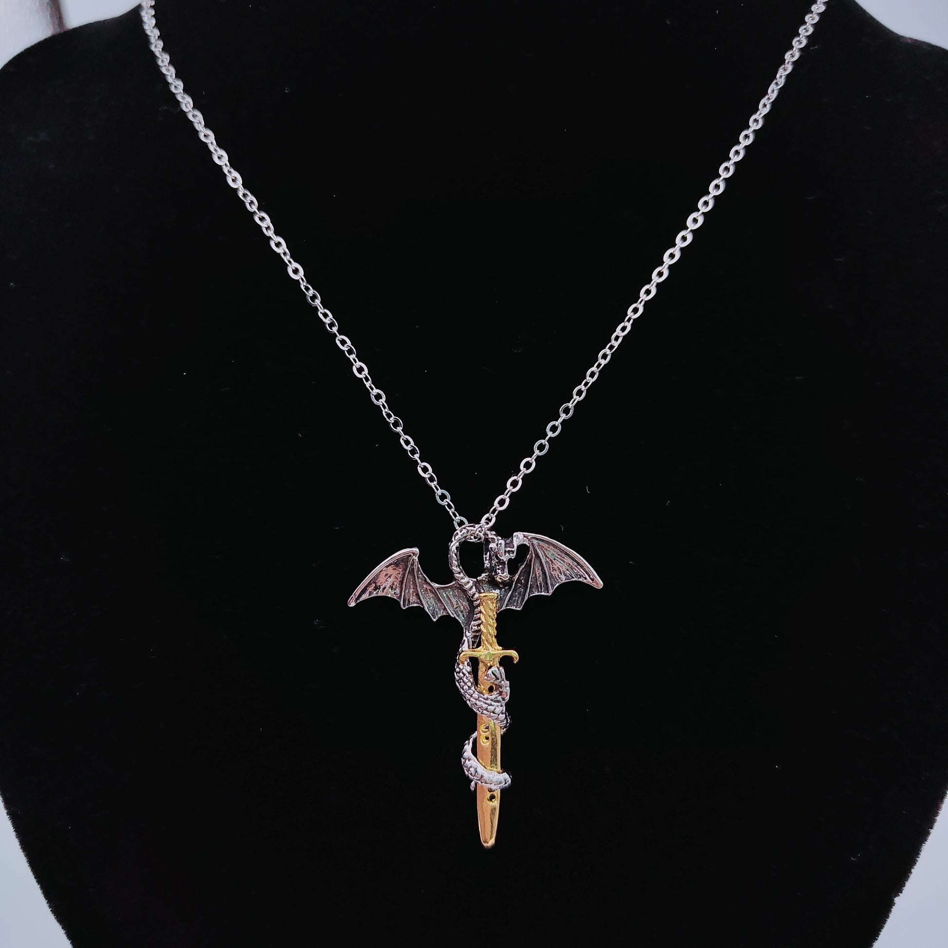 Choose the Silver Dragon Pendant for a sleek and elegant aesthetic, perfectly positioned in the cross formation. Elevate your style further by selecting the sword of your preference, whether it be the timeless silver or the opulent gold. The intricate details of the dragon, cross, and sword create a mesmerizing piece that reflects your unique taste and personality.