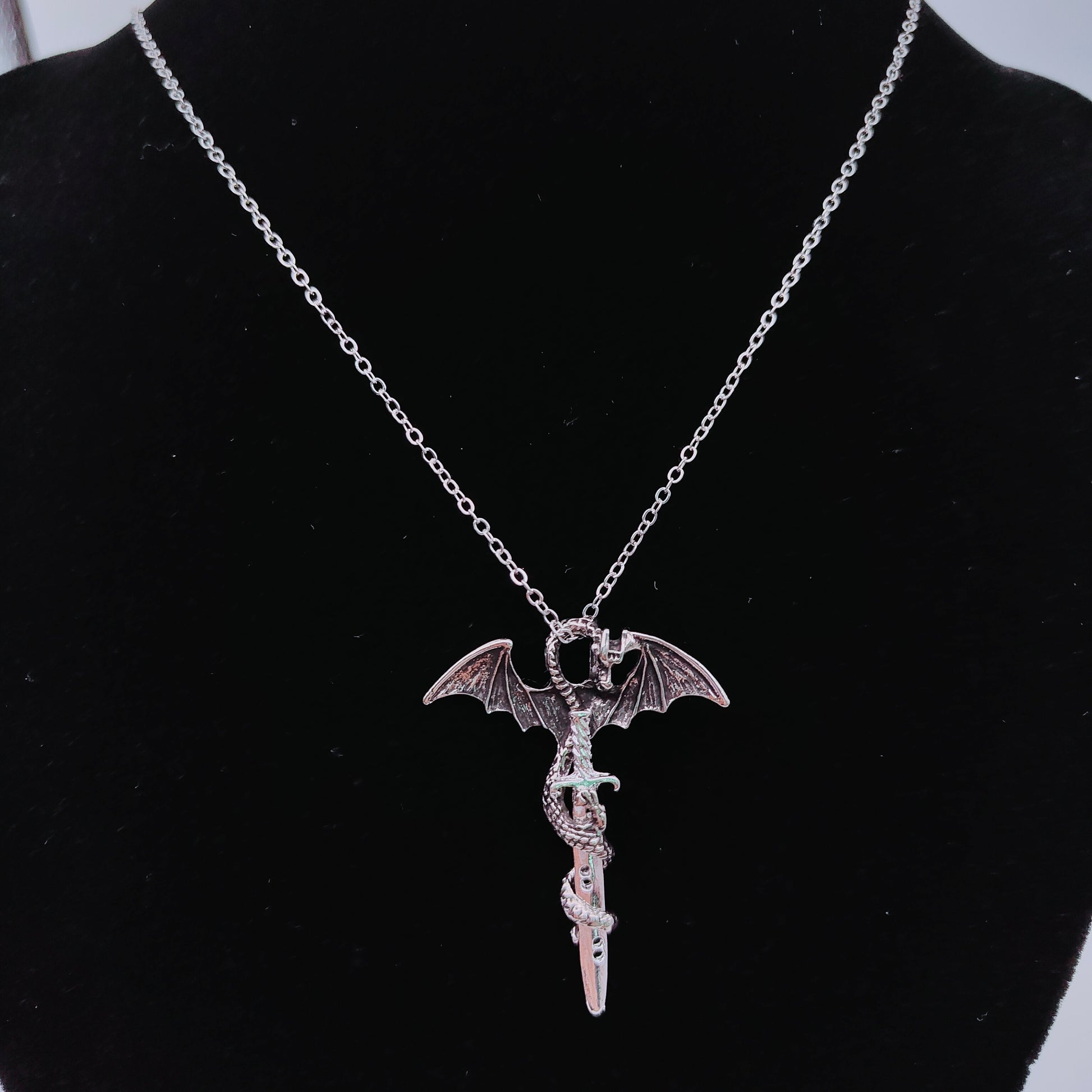 Alloy Dragon Cross with Sword Pendant and Chain