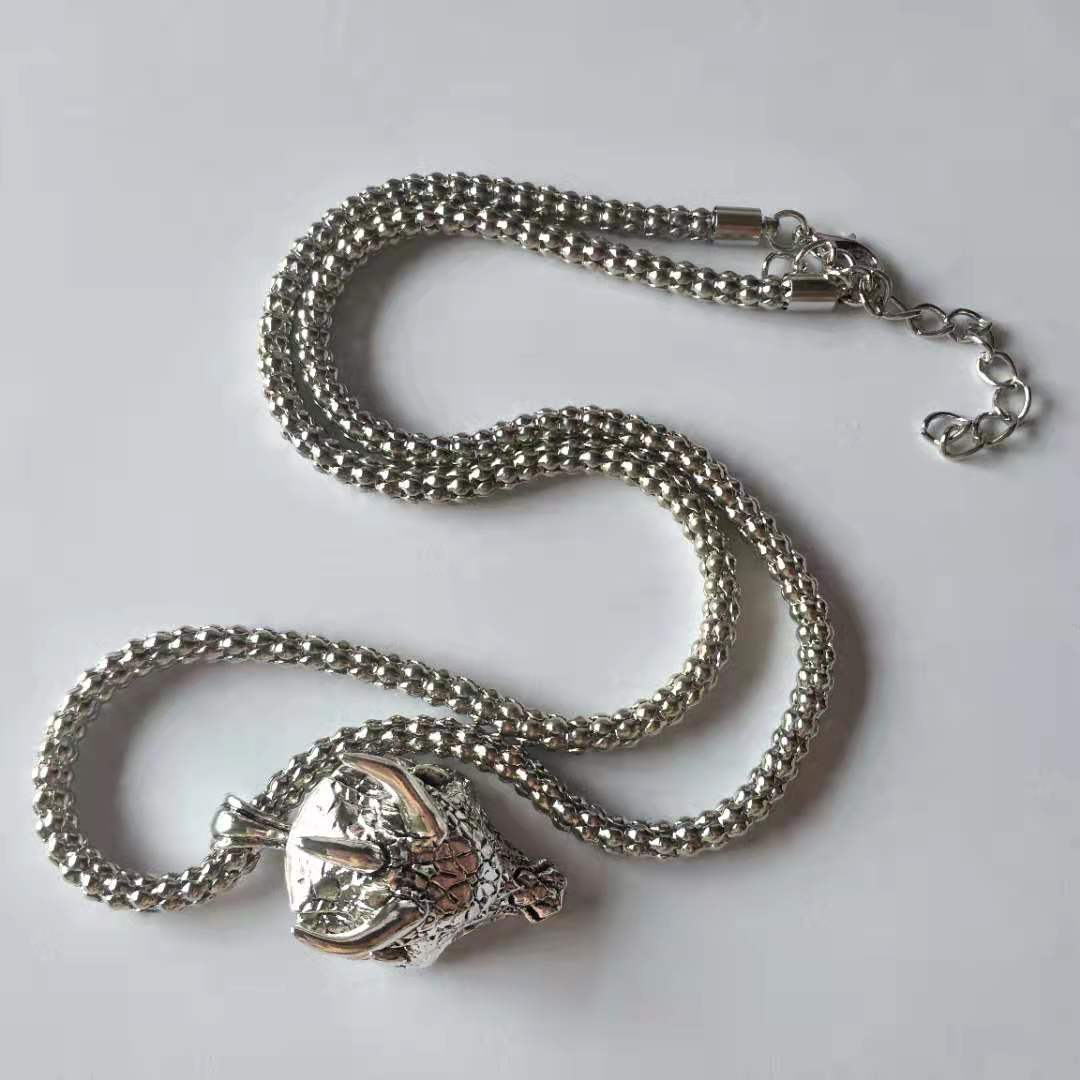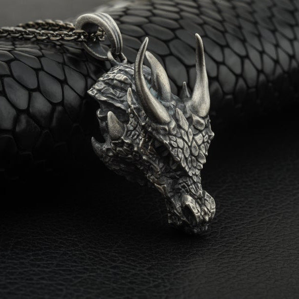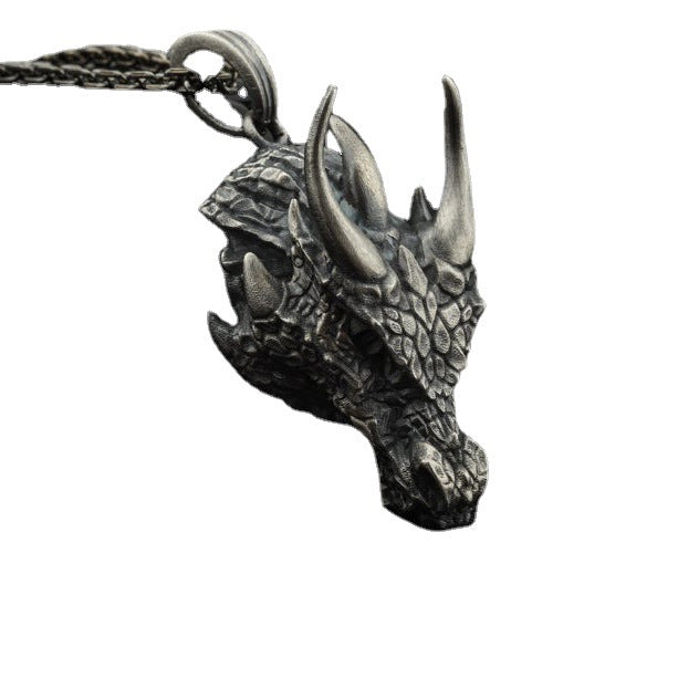 Antique Silver Alloy Mythical Dragon Head Pendant Necklace