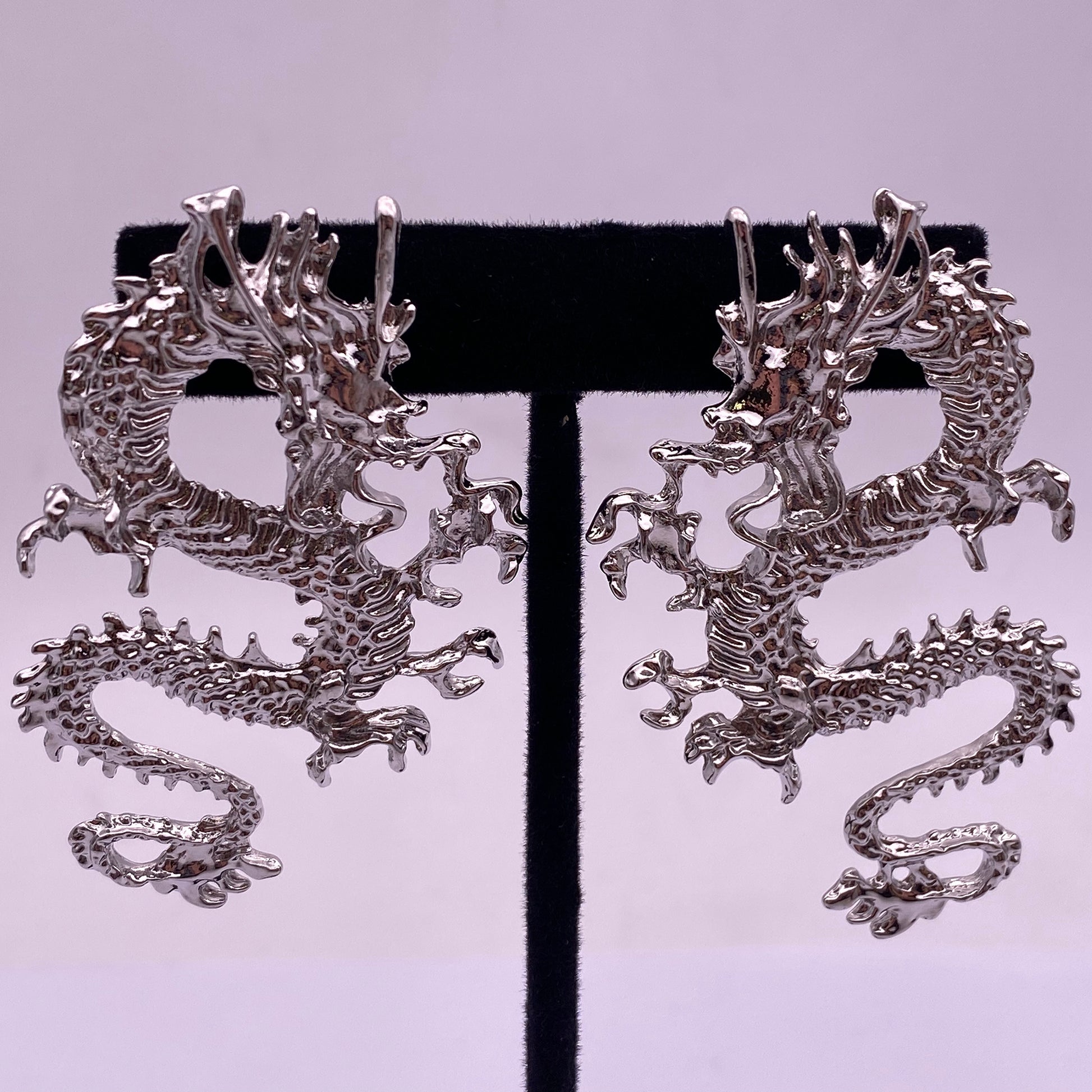 These Chinese Serpent Dragon style earrings bring a unique and bold style to any look. Crafted in gold and silver finishes, they're perfect for a night out or to make a statement. Enjoy a piece of timeless style!