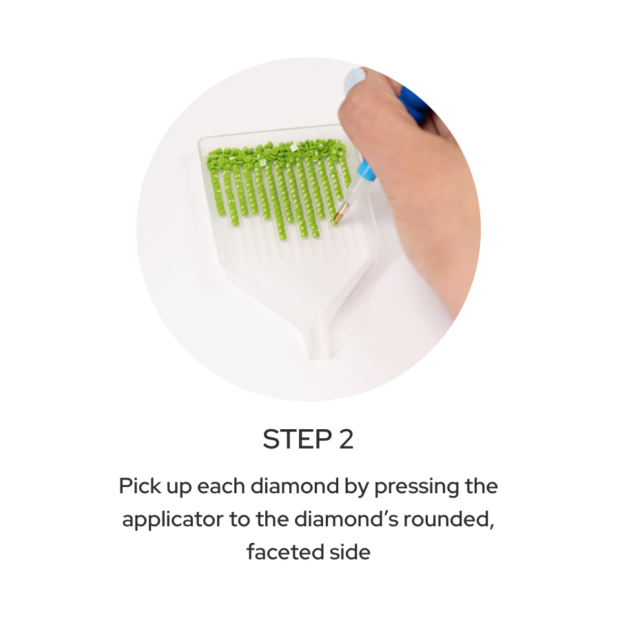 STEP 2: Pick up each diamond by pressing the applicator to the diamond’s rounded, faceted side