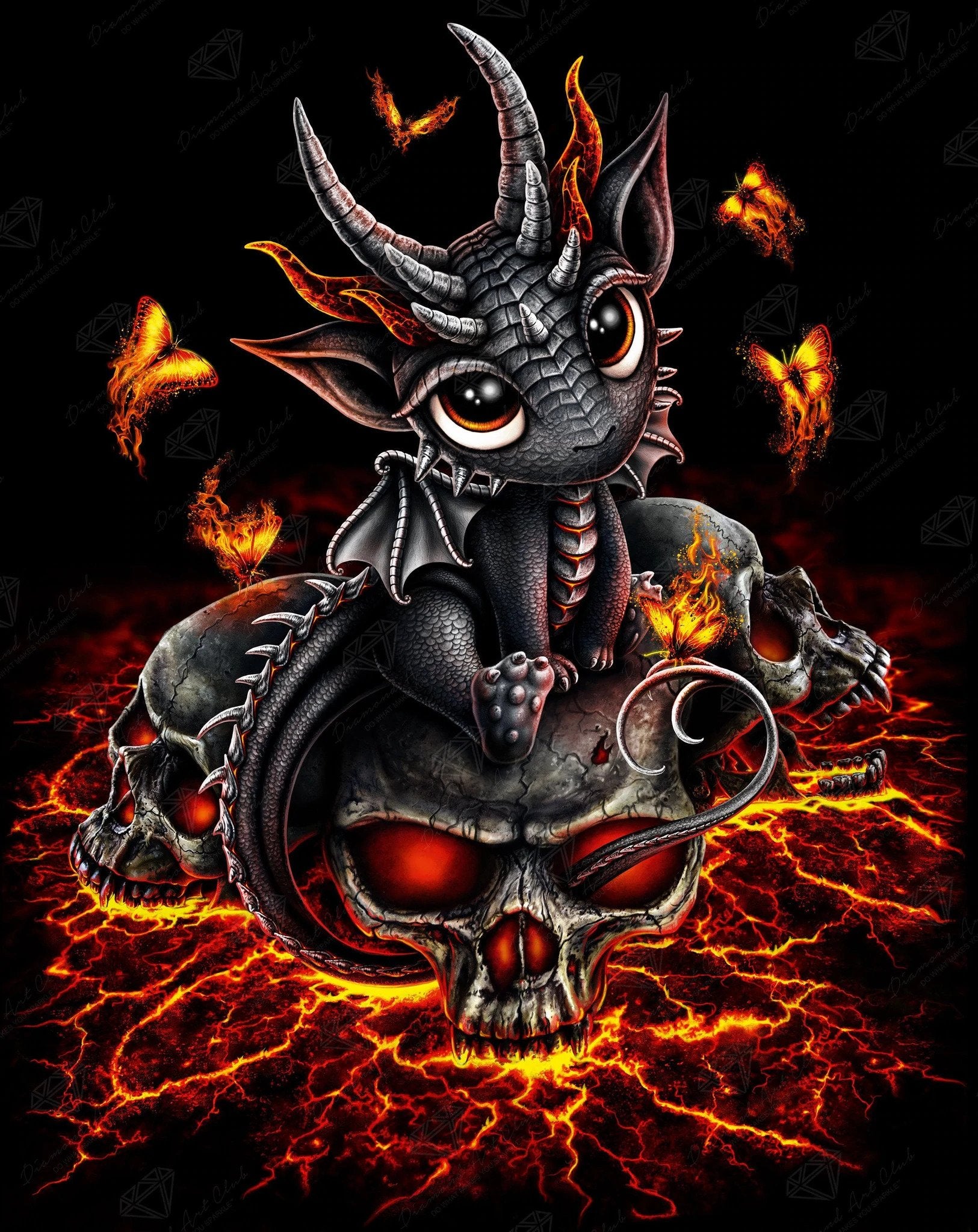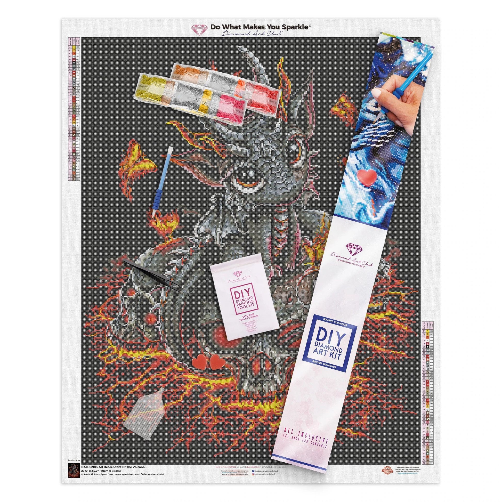 Now available directly to Australians through Dragonzone are these beautiful Diamond Art Club kits. Descendant of the Volcano is a stunning work of art featuring a juvenile black dragon sitting atop 3 skulls amongst lava.