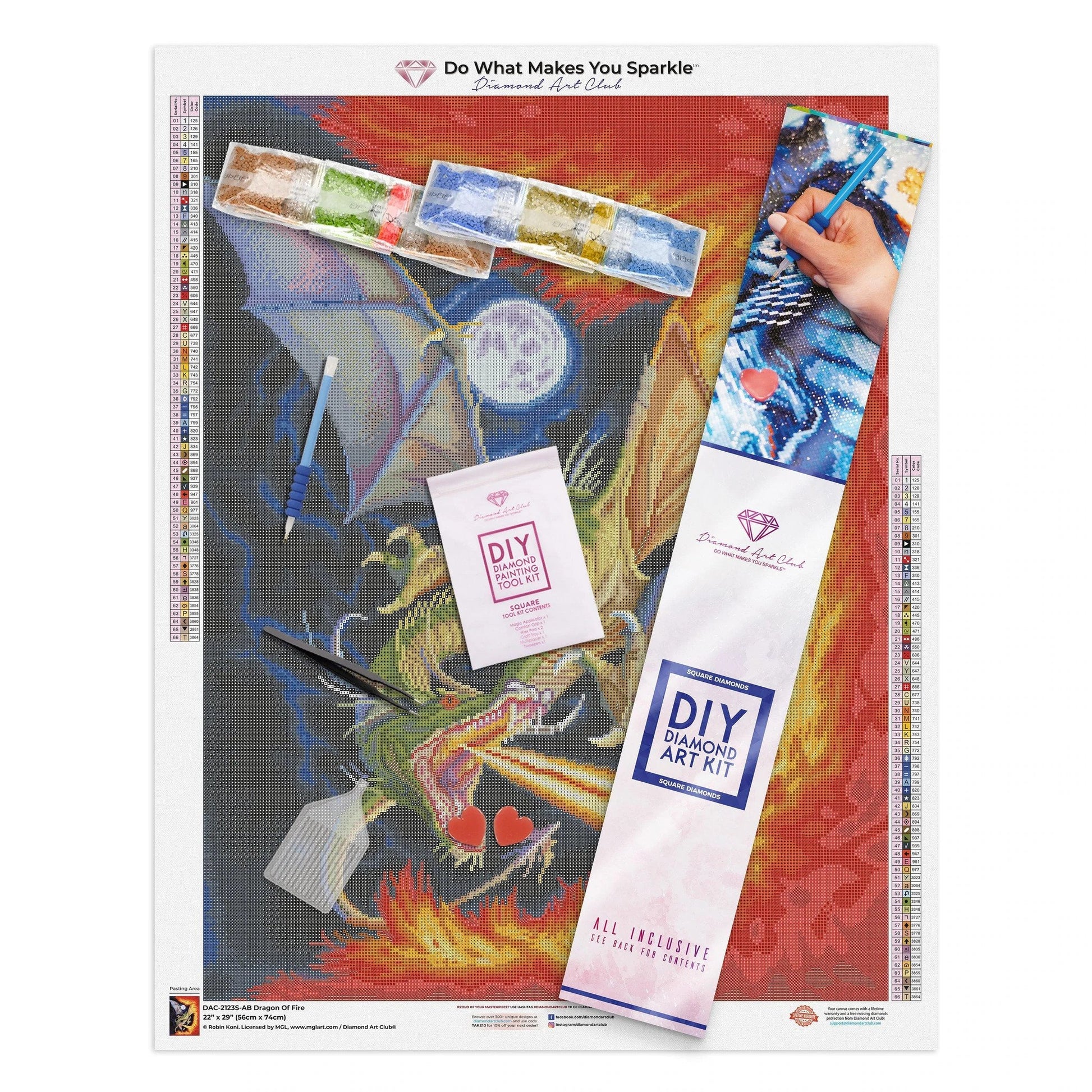 Now available directly to Australians through Dragonzone are these beautiful Diamond Art Club kits. Dragon of Fire is a stunning work of art featuring a fire breathing green dragon on a full moon lit stormy night.