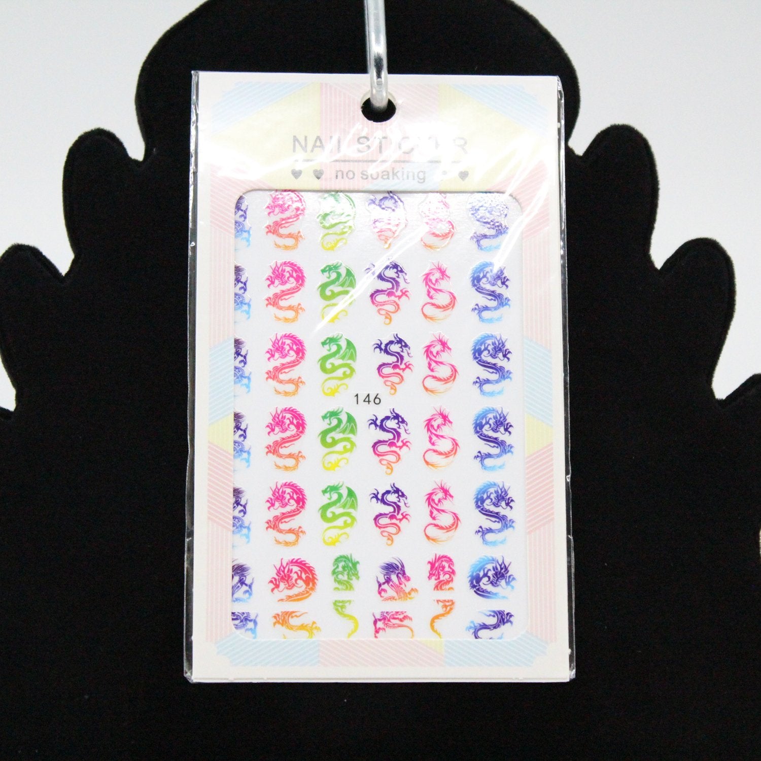 Finger Nail Art Tribal Chinese Dragon Stickers Rainbow