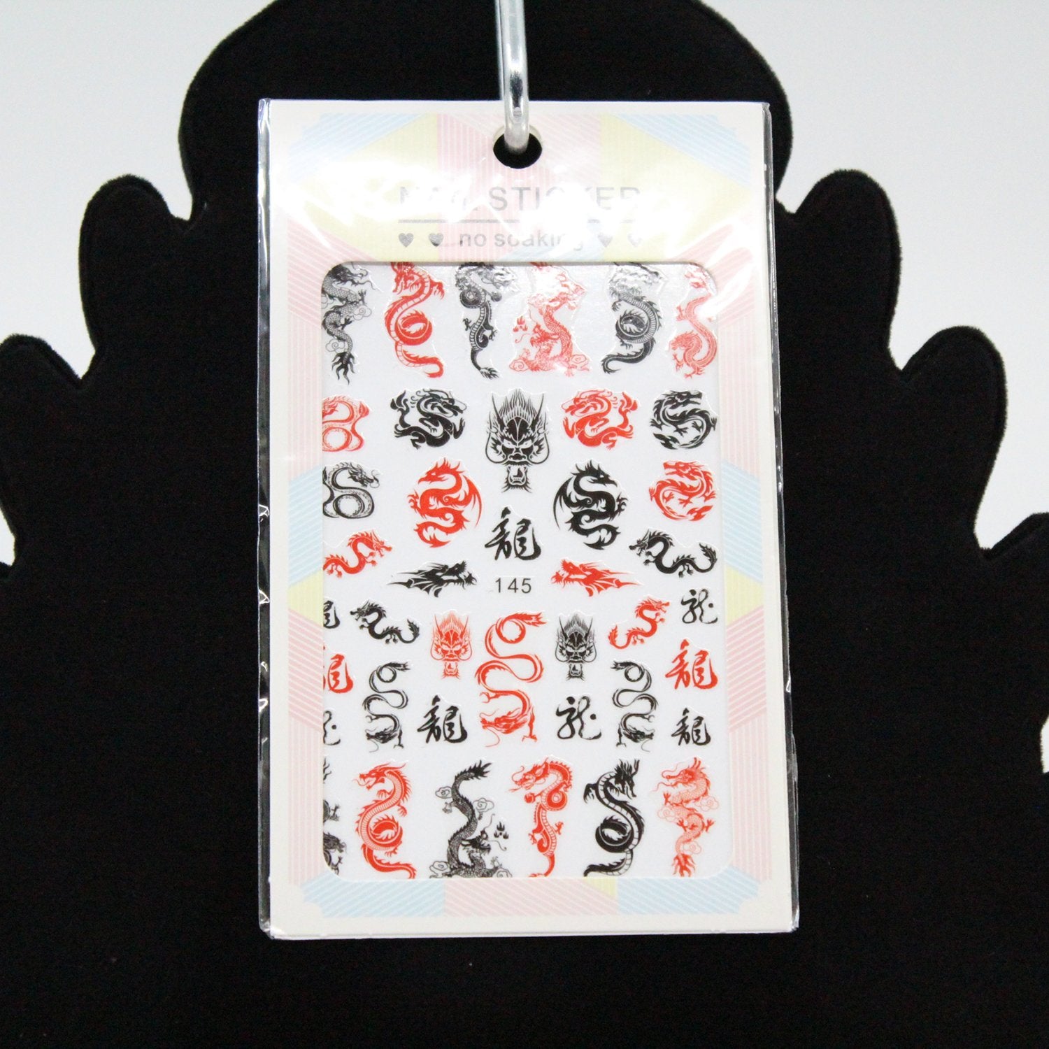 Finger Nail Art Tribal Chinese Dragon Stickers Red/Black