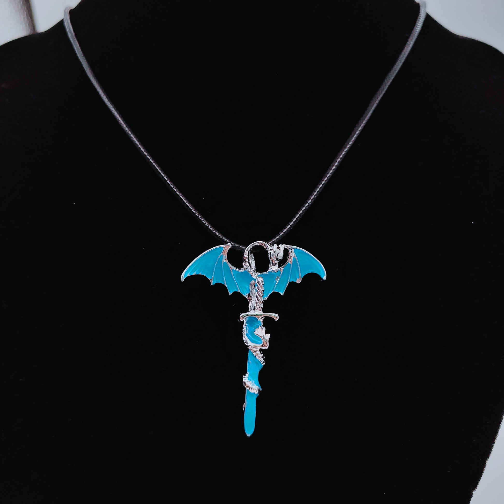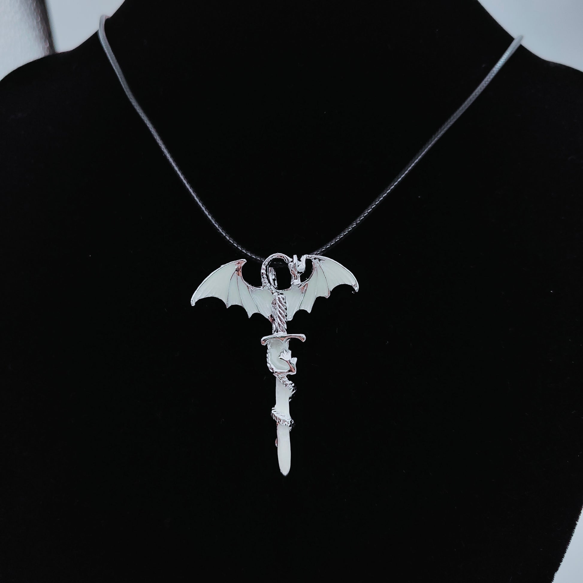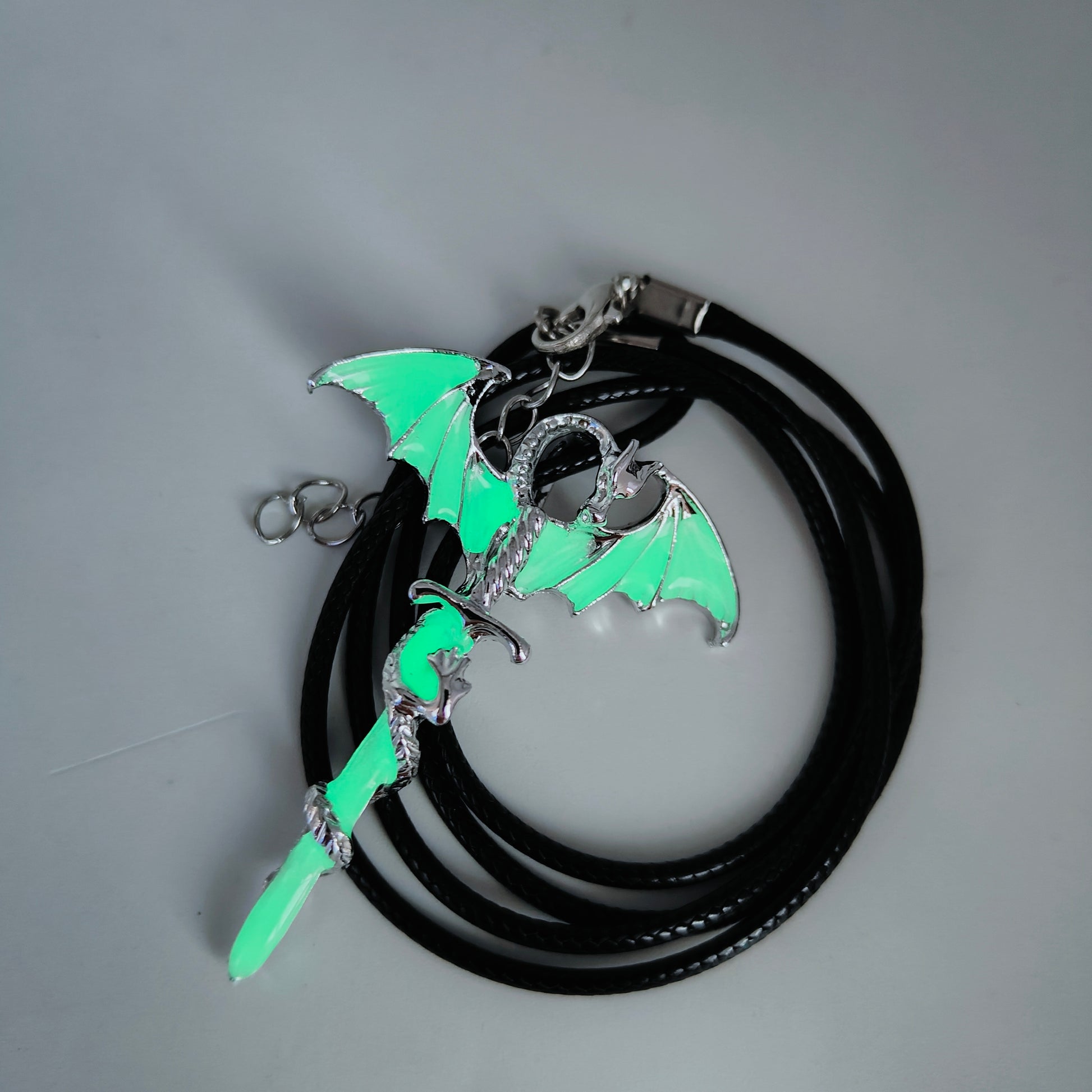 Unleash the mystical allure of our Glow in the Dark Dragon Sword Pendant, a stunning fusion of fantasy and style that captivates day and night. Crafted from high-quality alloy, this pendant boasts intricate details and an otherworldly charm that will elevate your fashion game to new heights.