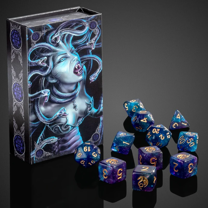 The Medusa Dice Set by Anne Stokes and Critic UK is available to order directly from Brisbane Australia through DragonZone Australia.