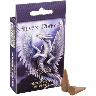 The 15 pack of Silver Dragon - white musk incense cones that are exclusively designed by the fantasy artist Anne Stokes and are a part of the Age of Dragons range of incense cones.