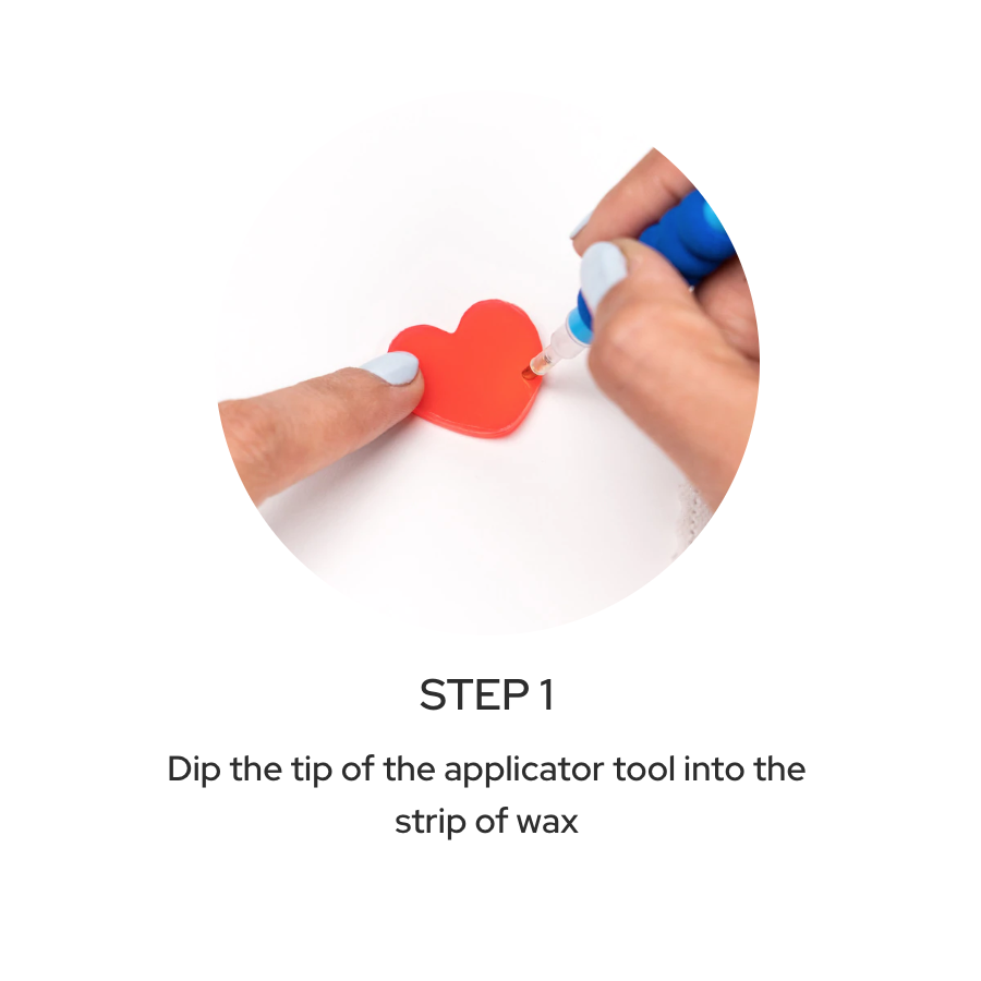 STEP 1: Dip the tip of the applicator tool into the strip of wax