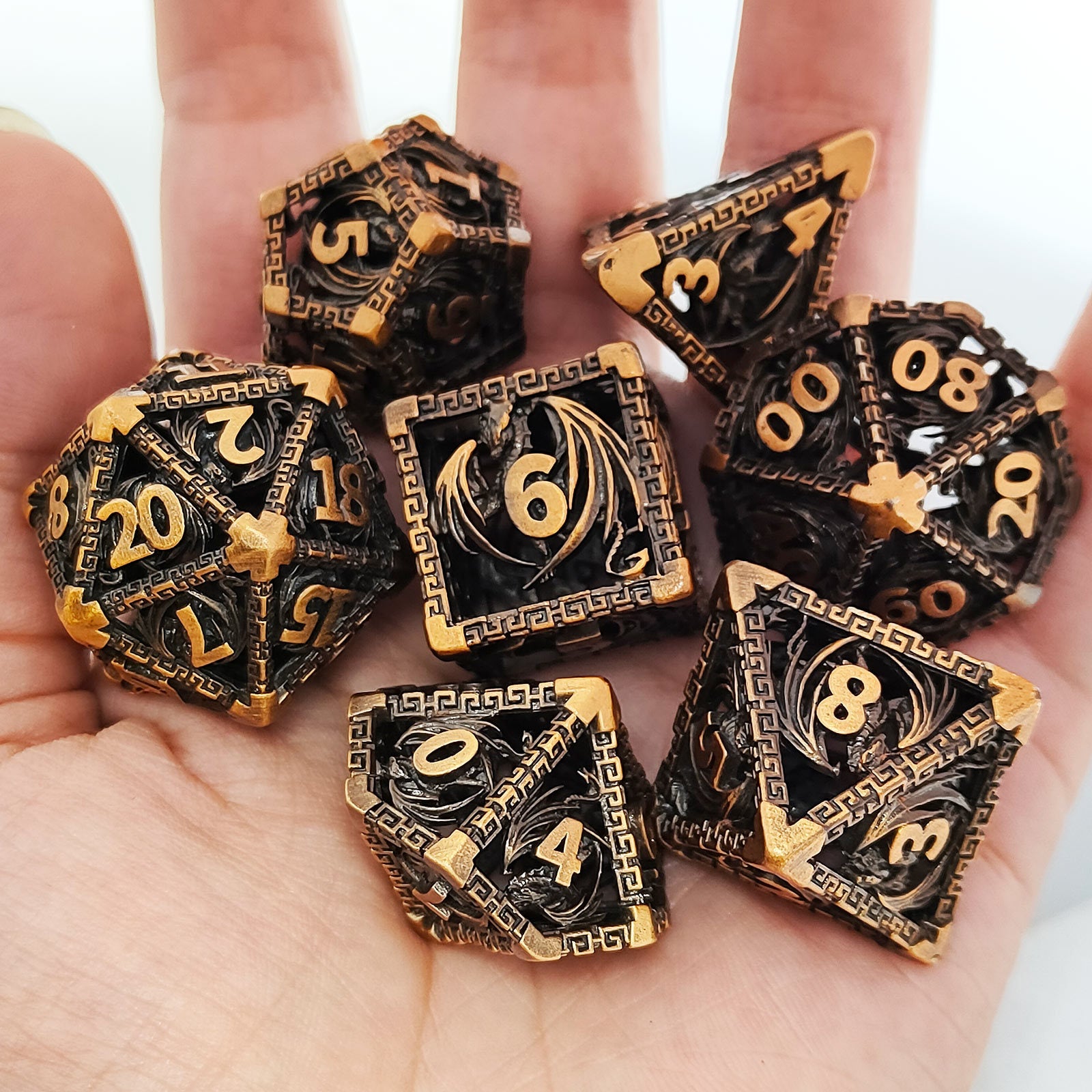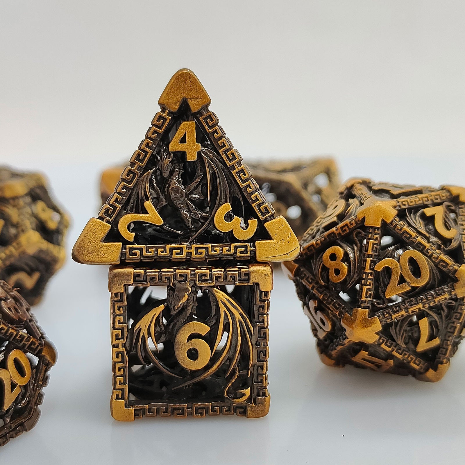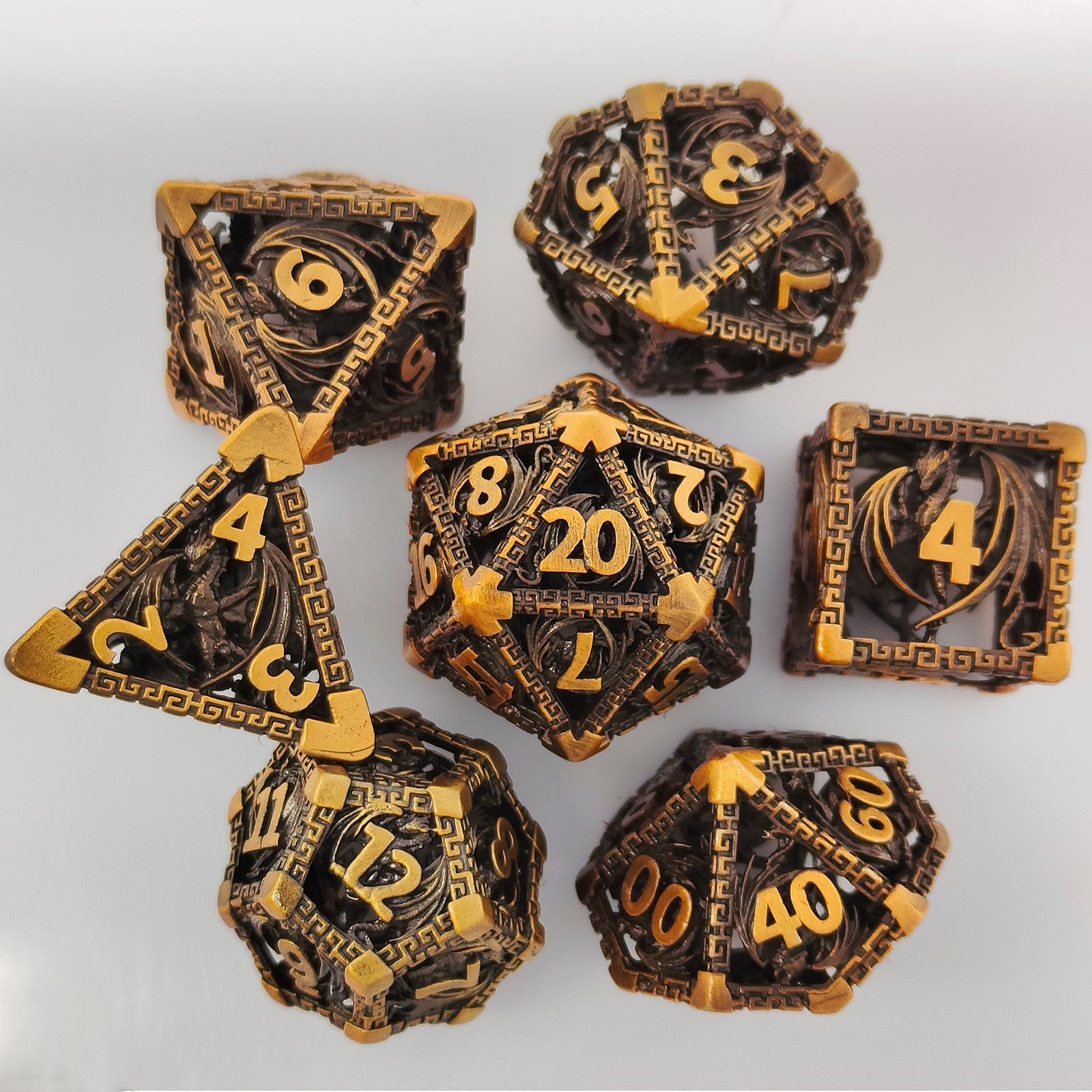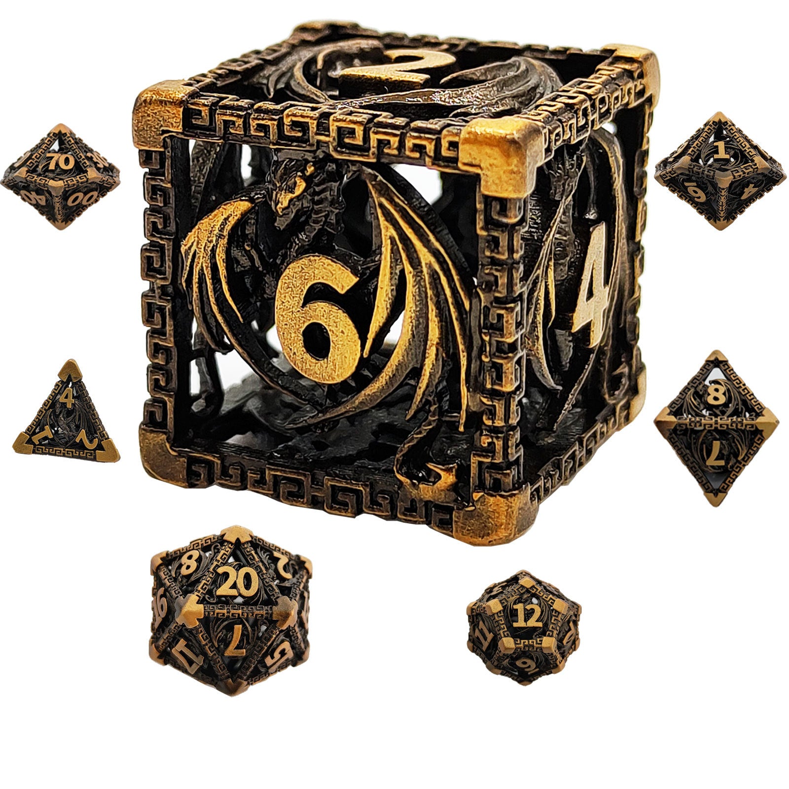 Wyvern Aztec Metal Dice Set – Bronze or Brass Highlights